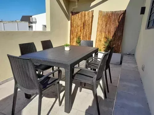 Juego 6 Más que Sillas Melodi + Mesa Alta 150×90 Alejo Estructura Negro